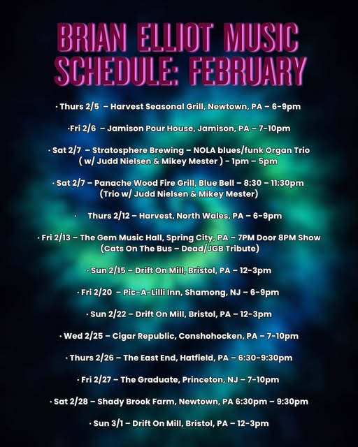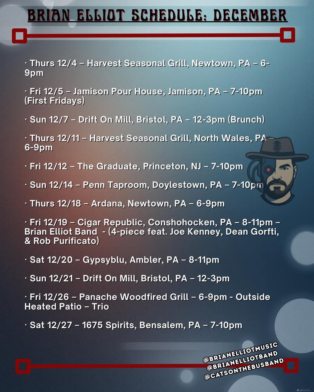 Brian Elliot is available for solo, duo, trio, or full band performances to bring live music to your events and gatherings.